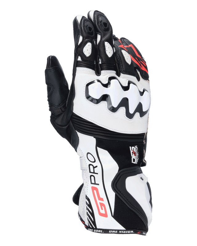 The GP Pro R4 Gloves are a pure racing sport performance gauntlet glove with optimized material mapping to guarantee excellent fit and comfort, as well as the highest levels of protection. Constructed with premium materials, the gloves are equipped with Alpinestars Dynamic Friction Shield (DFS) knuckle and cuff protectors with advanced airflow ventilation and aramidic reinforcement to ensure the gloves are primed for superior trackday performance.