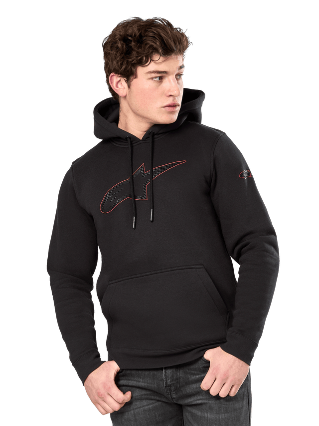 • Front and sleeve carbon fiber look fill logos with hd print red outline