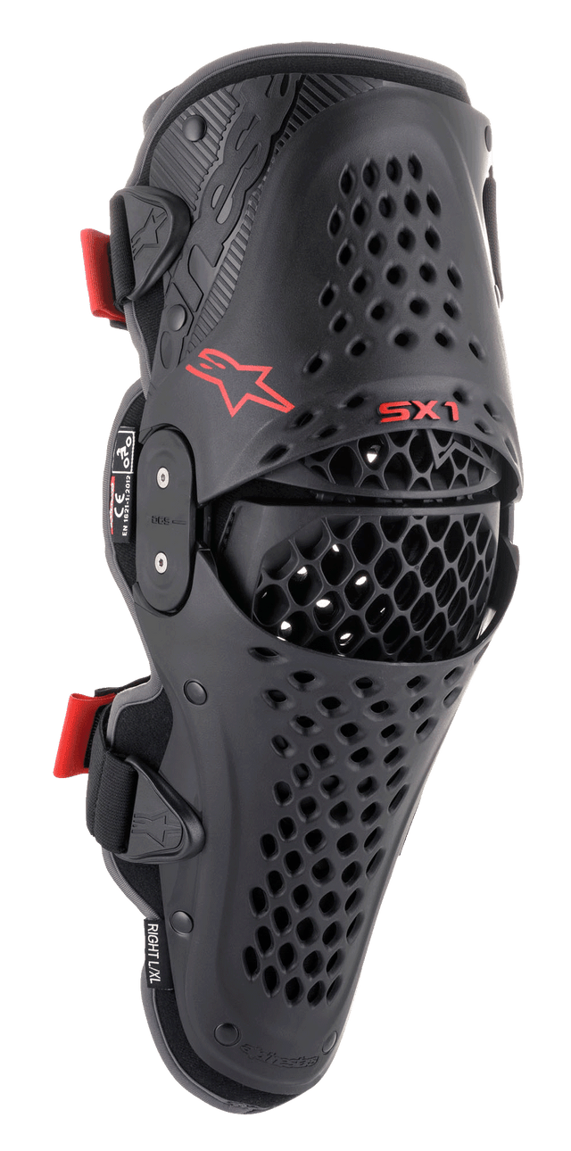 The SX-1 V2 Knee Protector helps reduce the risk and severity of a knee injury by preventing hypertension of the knee in the event of an accident. This lightweight yet strong protector features a poly-centric hinge system that allows natural articulation of the knee. The ergonomically sculptured knee protector is constructed from a semi-rigid high performance polymer for optimum levels of protection and flexibility, while the highly ventilated padding allows for superb airflow cooling. Correct positioning of the knee protector improves comfort, avoiding pressure points on the patella, and the Dual Strap System promotes a secure fitment of the protector in all riding positions and includes a combined buckle and hook and loop closure for rapid and easy mounting.